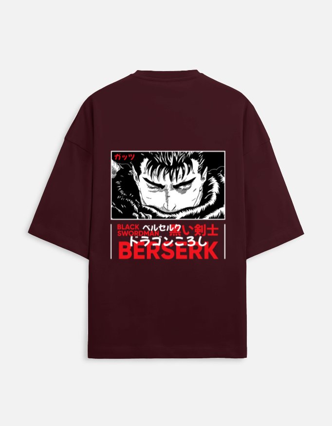 Embrace the dark, legendary world of Berserk with the Berserk Oversized Unisex T-Shirt, featuring the Black Swordsman himself, Guts. This tee captures the raw energy of the series with a striking monochrome manga panel contrasted against bold red typography and Japanese lettering, delivering the ultimate anime streetwear aesthetic.