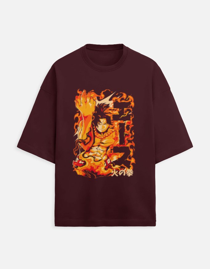 Unleash the fire within with the Portgas D. Ace Oversized T-Shirt, featuring a striking One Piece flame design inspired by the Fire Fist himself. Crafted from a 260 GSM terry-knit cotton-poly blend, it delivers the perfect mix of comfort, structure, and heat. With its relaxed oversized fit and bold artwork, this tee brings Ace’s blazing spirit straight into your streetwear rotation.
