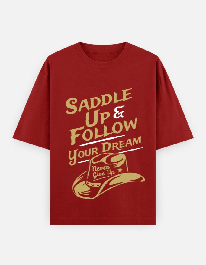 Forge your own trail with the Saddle Up Oversized Classic T-Shirt, where vintage Western flair meets street-style attitude. This olive green tee delivers more than just comfort — it brings a message. With its standout cowboy graphic and the words “Saddle Up & Follow Your Dream” boldly emblazoned across the chest, it’s a wearable reminder to keep going no matter what.